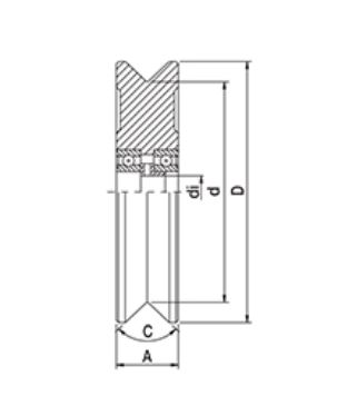 - Cod. 10020115 Rueda H.T. 735 Ø160mm Canal V Carga Máx (1 ud) : 350 Kg 1 RODAMIENTO